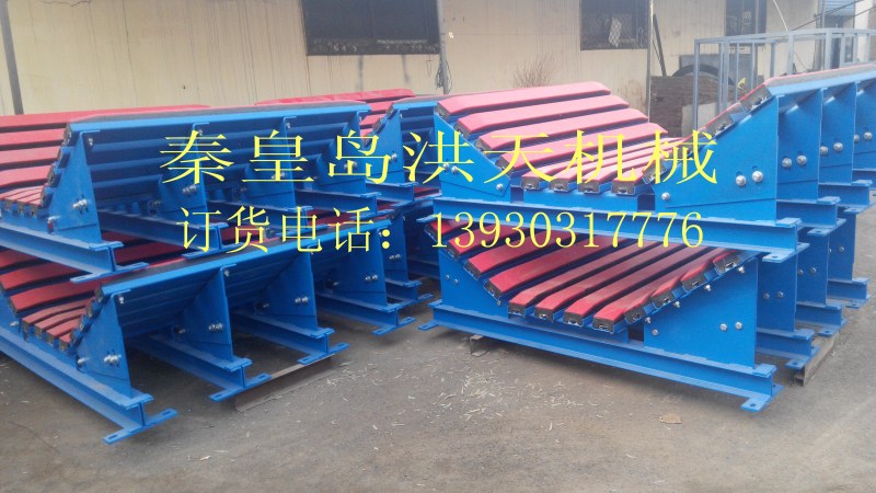 緩沖床主要用于替代緩沖托輥,緩沖床由緩沖條組成,而緩沖條主要應用優良的高彈性特種橡膠層充分有效吸收了物料下落時的沖擊力,大大降低了物料下落時對輸送帶的沖擊,真正的改善了落料點的受力狀況。并采用特殊的UHMW高分子聚乙烯表面,使輸送帶與緩沖條之間的摩擦系數降到最低,且耐磨性好。緩沖床的使用保證了輸送帶的面與面的接觸,受力均勻,有效防止了由于托輥斷裂、脫落造成的皮帶縱向撕裂,同時大大降低了皮帶被銳器或尖銳物料穿透后縱向撕裂的概率。